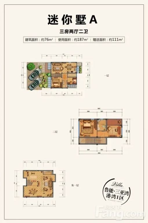 房子在鲁能港湾一区,是套187平米的精装别墅,上下三层带地下室和小院,私密性特别好!🏡
