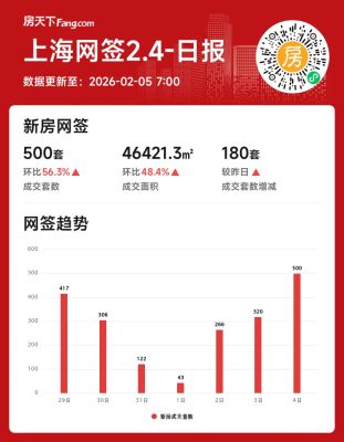 - 2026年02月04日上海新房成交爆发!单日成交量飙升近六成