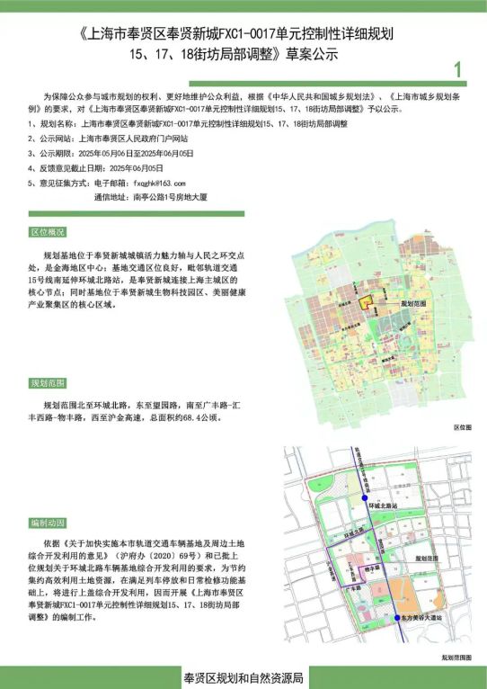 上海市奉贤新城FXC1-0017单元控制性详细规划15、17、18街坊局部调整