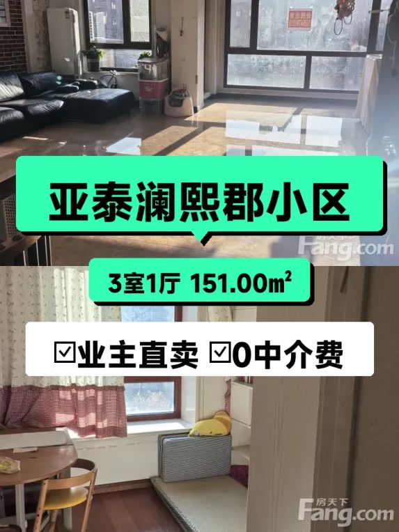 标题:自家亚泰澜熙郡151平大三房诚意出售✨