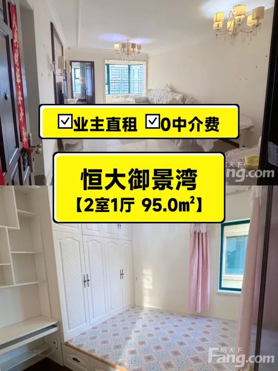 标题:自家恒大御景湾95平南北通透两居室出租啦✨