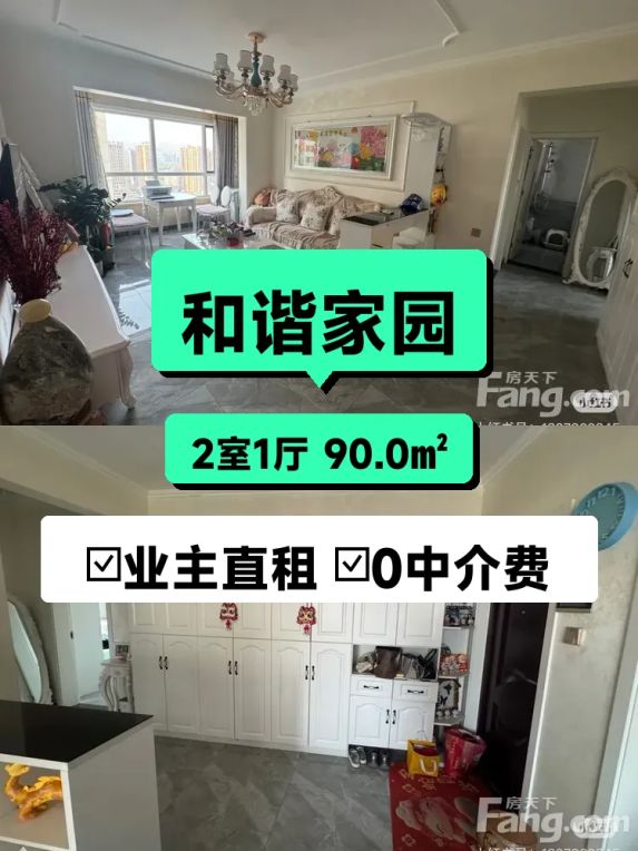 合租:次卧经济开发区和谐家园 2室1厅 90㎡ 10000元