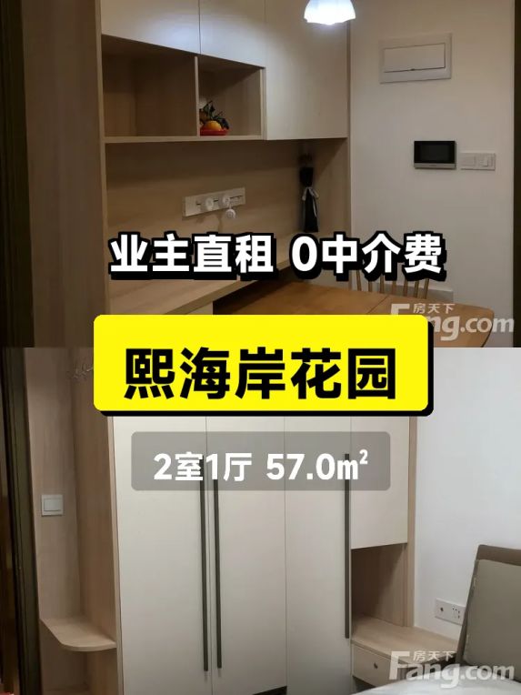 房子在熙海岸花园9楼,57平南北通透的两居室,采光特别好🌞 主卧带独立阳台,晾衣服晒太阳都超方便。装修是我们自己住的精装修,保持得特别新,这次是首次出租哦!