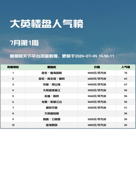 大英人气楼盘榜单揭晓!金宏碧海叠院荣登榜首 🌟