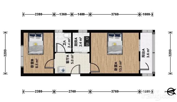 - 45㎡两室一厅,精装修,橡木家具+全新家电,直接拎包就能住!