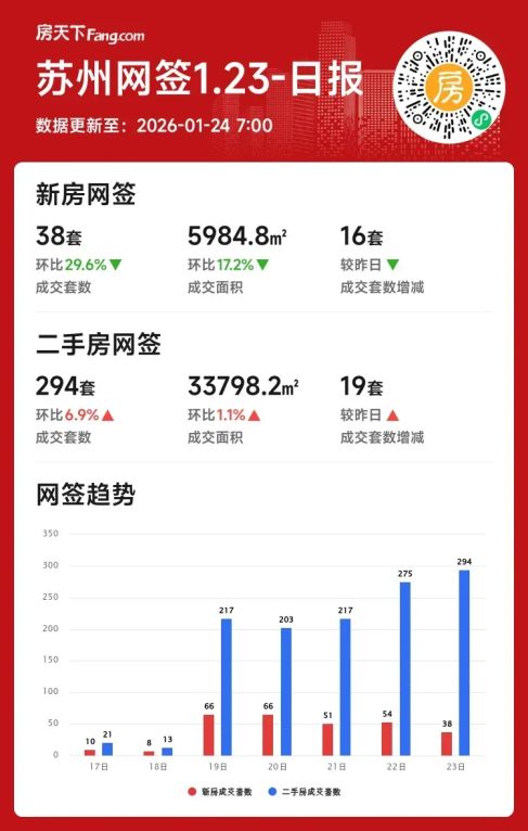 2026年01月23日苏州楼市冰火两重天!二手成交持续回暖