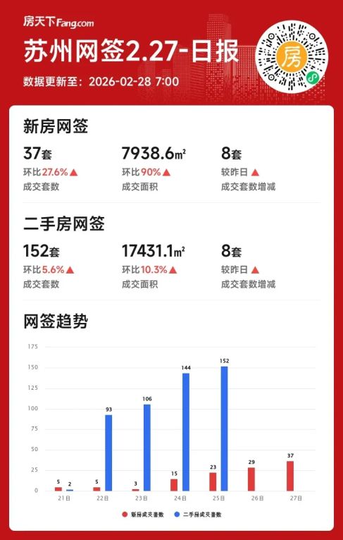 2026年02月27日苏州楼市冰火两重天?单日成交回暖但本月跌三成!