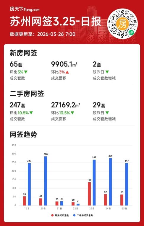 2026年03月25日苏州楼市月度成交火热,单日小幅波动!