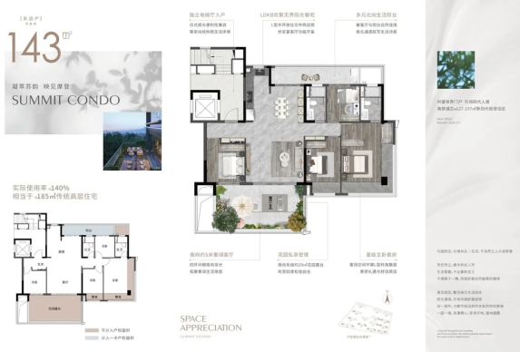 • 洋房:独立电梯入户、南向大横厅、L型环幕阳台/空中花园(约20-30㎡)