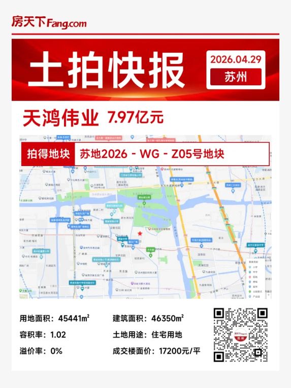 🏷️4月29日苏州土拍快讯!苏地2026-WG-Z05号地块成功出让。