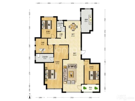 诸暨 华城新天地 4室2厅 136.00㎡ 169万