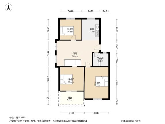 标题:急售!自家桂花南苑84㎡南北通透三居❤️拎包入住