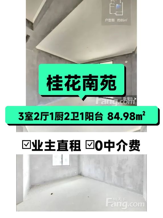 自家桂花南苑84㎡三房整租!南北通透800/月押一付三