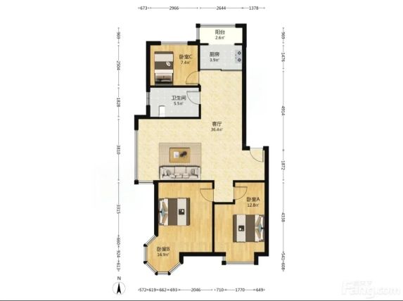 铁西 东环时代花园 3室2厅 106.00㎡ 89万