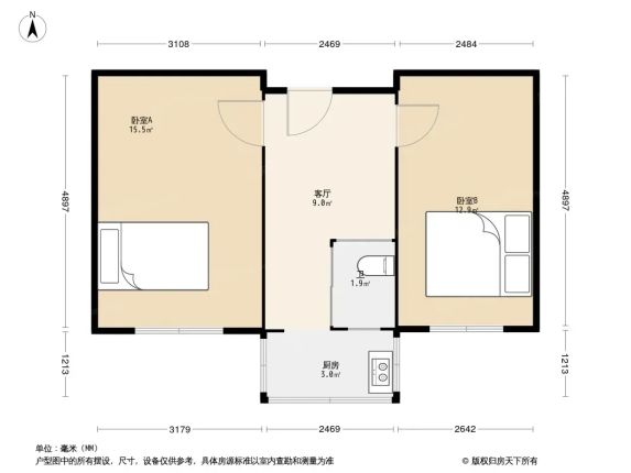 房子在6层顶楼,57平两室一厅,全屋朝南!☀️ 冬天阳光能晒到下午4点,暖气也特别给力,完全不用担心冷~最棒的是不把山,特别安静🤫