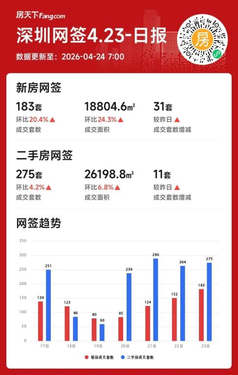 2026年04月23日深圳楼市新房成交火热,环比涨幅超两成!