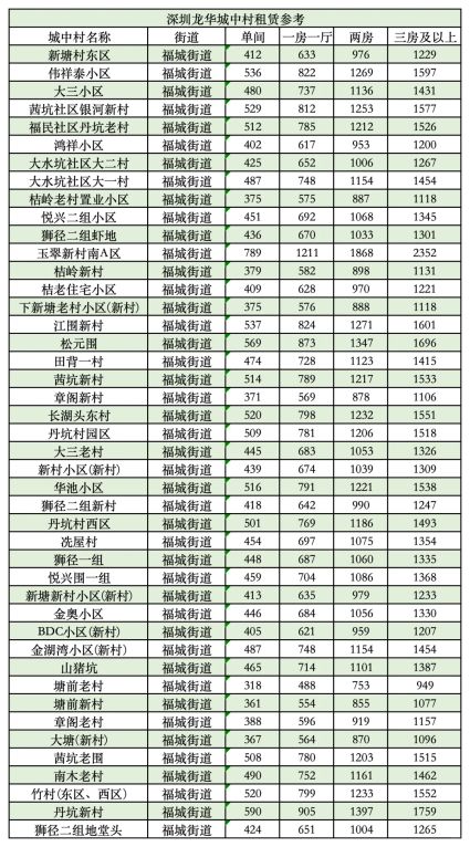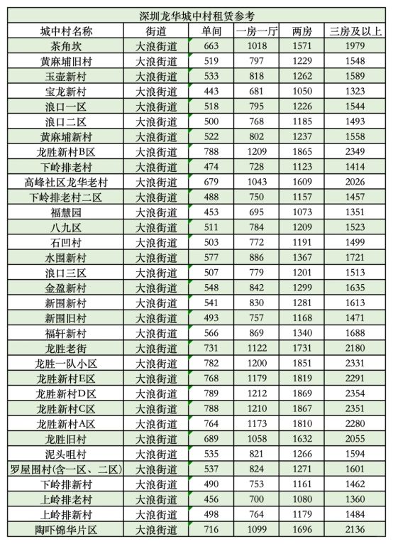 深圳龙华377个城中村各🏠型参考租💰