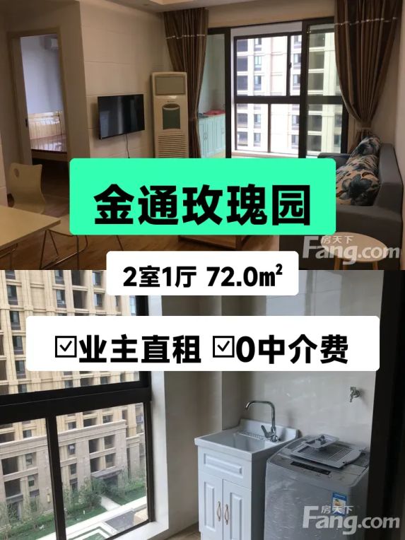 标题:自家精装两房出租!金通玫瑰园72平南向阳光房🌞