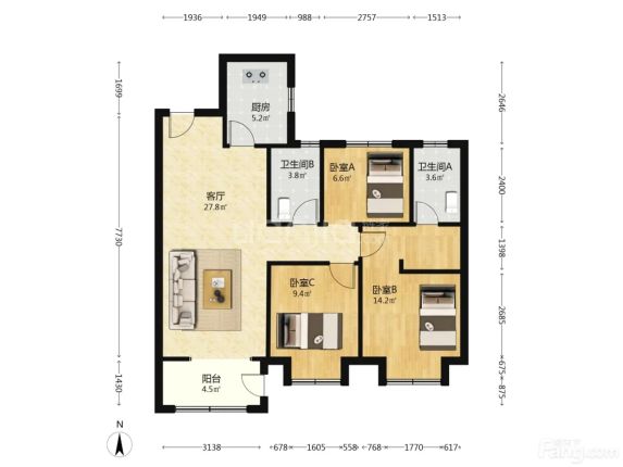 路北 金域缇香二期 3室2厅 109.20㎡ 165万