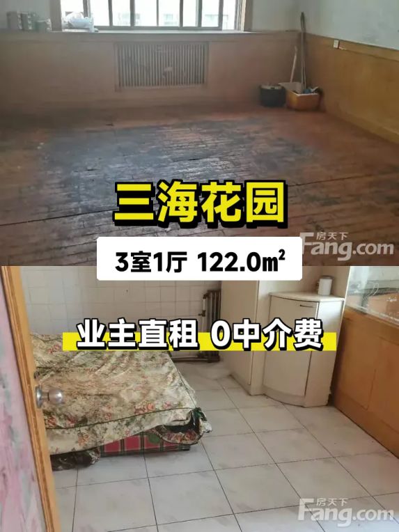 标题:自家三海花园122平大三房出租,东南向采光超棒!🌞
