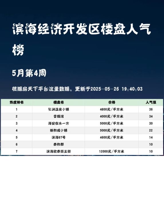 滨海经济开发区人气楼盘榜出炉🔥弘润温泉小镇登顶🏆