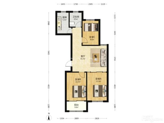 高新 华安东方明珠 3室2厅 97.25㎡ 53.9万