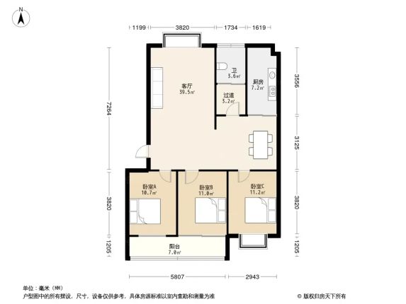 奎文 江南印象潍州 3室2厅 120.00㎡ 56万