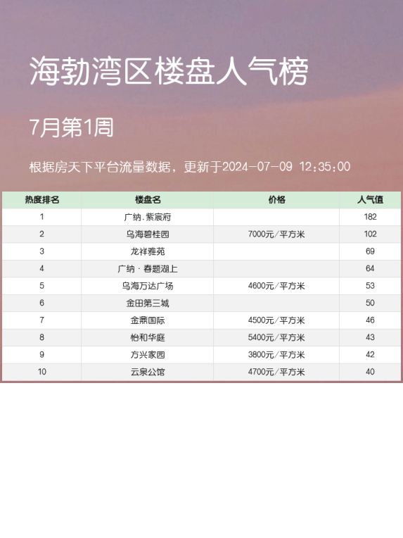 海勃湾区人气楼盘榜单揭晓!广纳·紫宸府荣登榜首