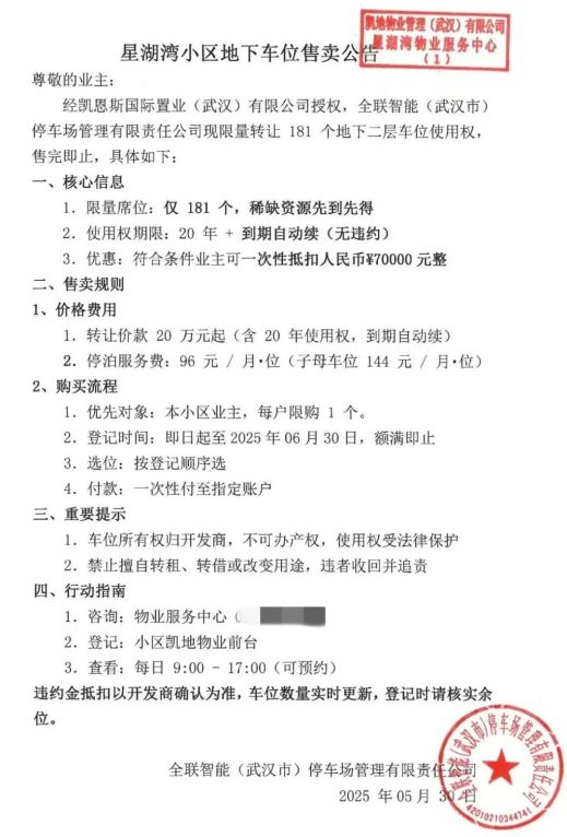 地下车位起步价20万/个,没有产权,仅为20年使用权