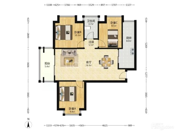硚口 左岸美邻 3室2厅 91.63㎡ 130万