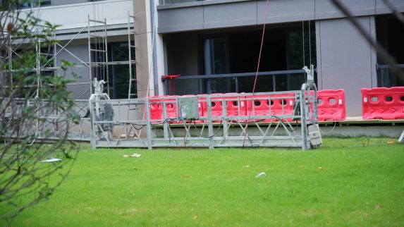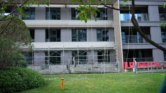外立面整改:楼体搭设吊篮,不平整处进行维修