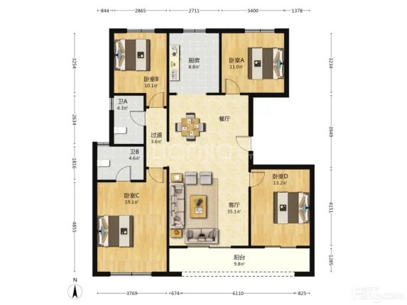 ✅ **户型太能打**!四间卧室全明设计,主卧能摆下2米大床还带整面衣柜,二胎家庭或老人同住都超宽松