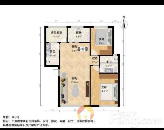 户型是3室2厅2卫,南朝向
