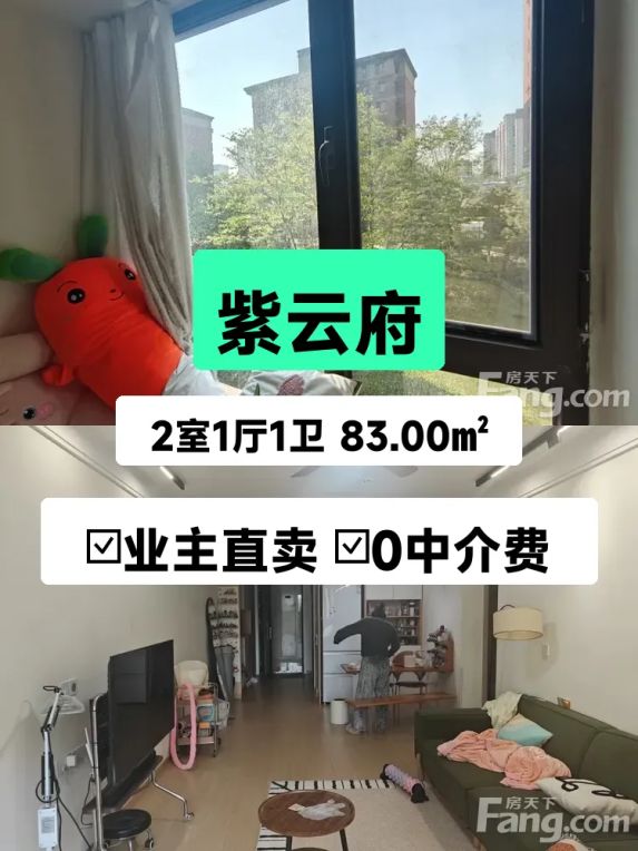 这套房子是我自己家在住的紫云府新房,2023年刚交付的电梯房,保养得和样板间一样新✨ 83平做成两室一厅特别方正,主卧和客厅都朝南,冬天阳光能晒到飘窗上,晾衣服半天就干透了☀️