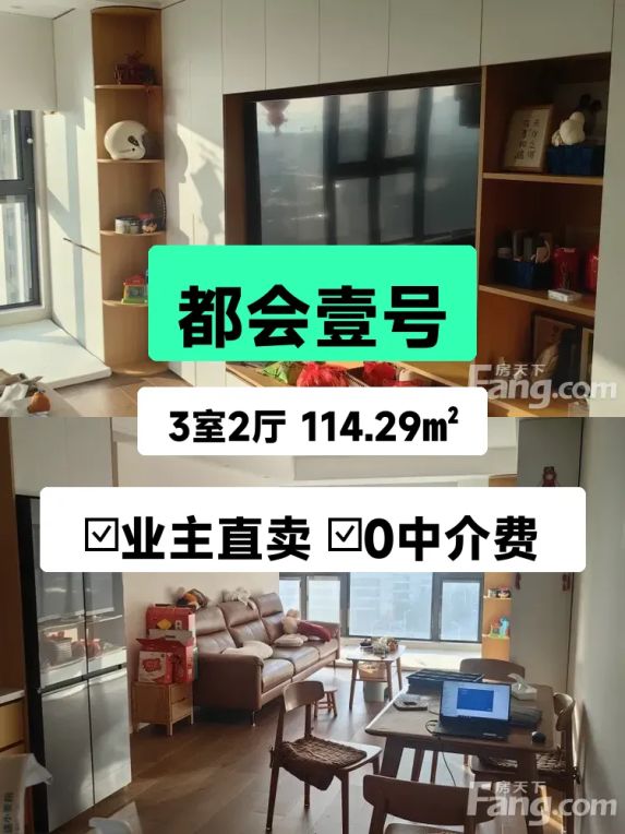 标题:自家南向三居室急售!都会壹号黄金楼层仅95万💕
