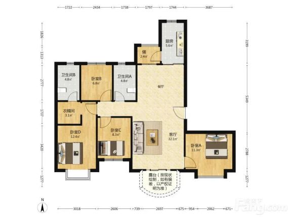 标题:自家恒大名都147平四居急售,南北通透高楼层才68万!