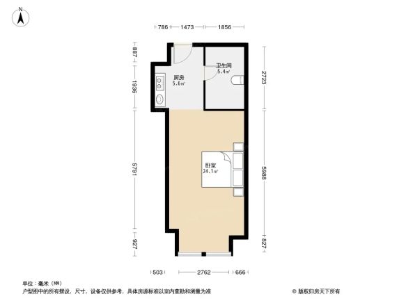 金凤区正源北街万达公寓 1室1厅 56.09㎡ 1450元/