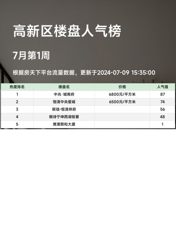 高新区人气楼盘榜单📊中兆·城南府荣登榜首