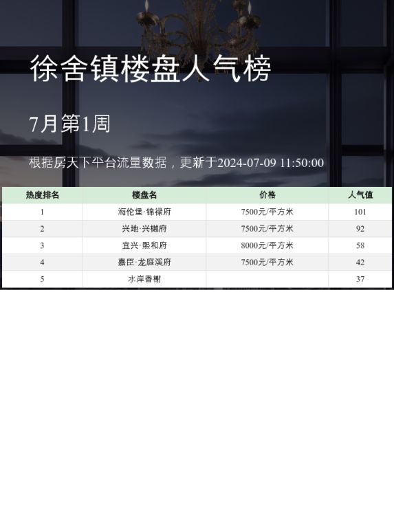 徐舍镇人气楼盘榜单,海伦堡·锦禄府稳居第一!