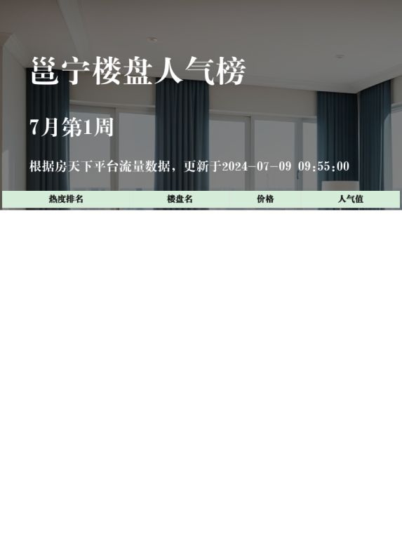 🏠 在当前买房市场中,选对楼盘至关重要。人气楼盘榜单不仅能帮你快速筛选出热门楼盘,还能提供有价值的信息,助力你做出更明智的选择。今天,我们就来看看邕宁区的人气楼盘榜单,了解一下热度最高的前三名楼盘。