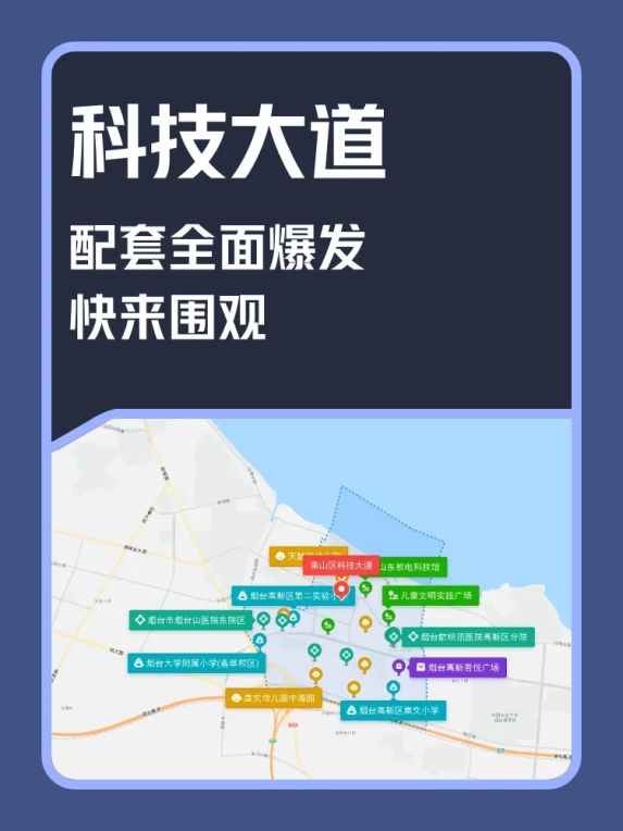 莱山科技大道片区位于烟台东部滨海新城核心区,往东接壤高新区,西侧紧邻凤凰湖商圈。这里既有中集零碳智造产业园这样的产业集群,又有改造升级的复合型生态绿地,属于产城融合示范区。
