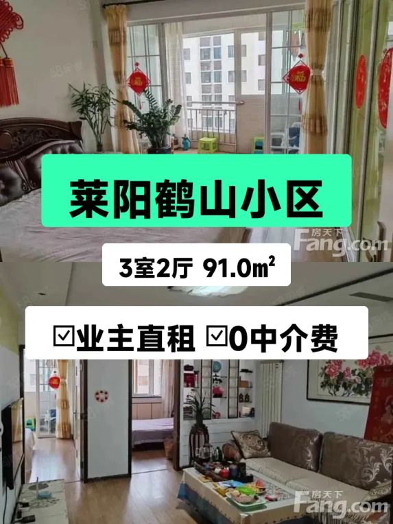 标题:自家莱阳鹤山小区3室2厅首次出租!南北通透91㎡只要1300💰