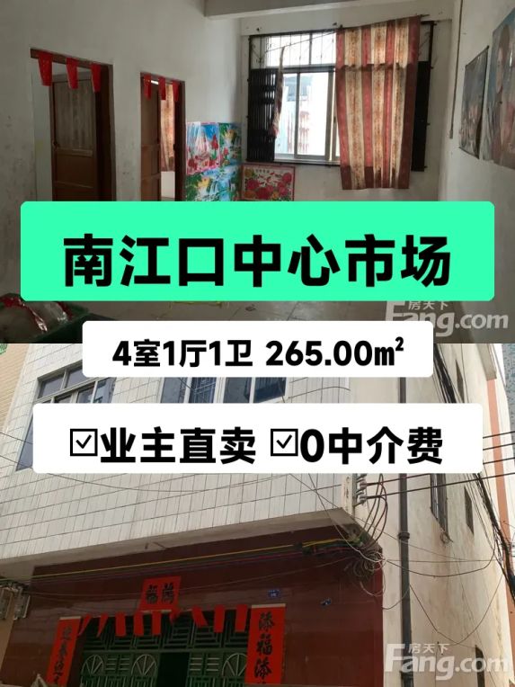 大降价仅需62万自建房红本房屋超低价整栋出售!三层八!房间间小一点一层都可以做到四个房!建地68方 实用面积265方!南江口县中学附近!近学校近中心市场近又有高铁站商圈便捷