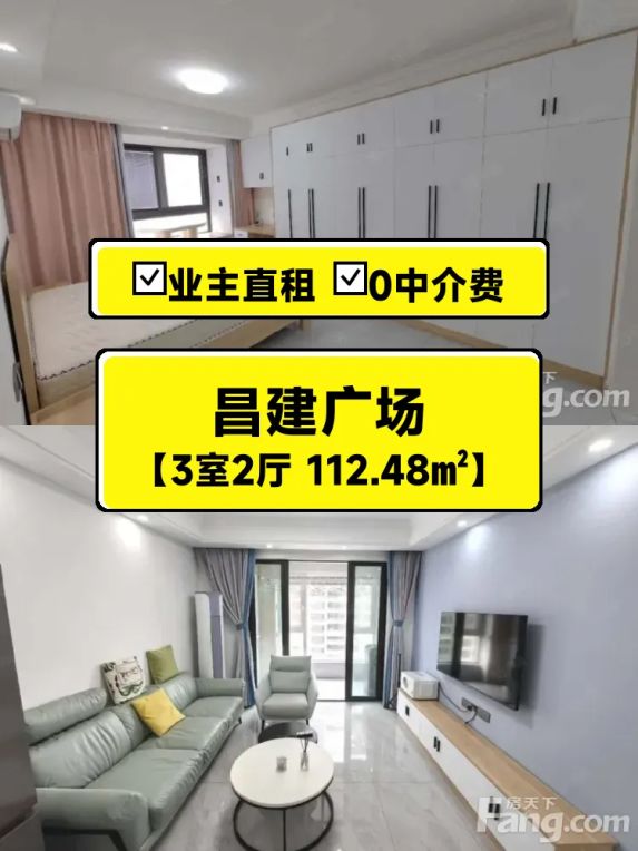 标题:自家南向三居室出租🌞 昌建广场高层视野超棒!