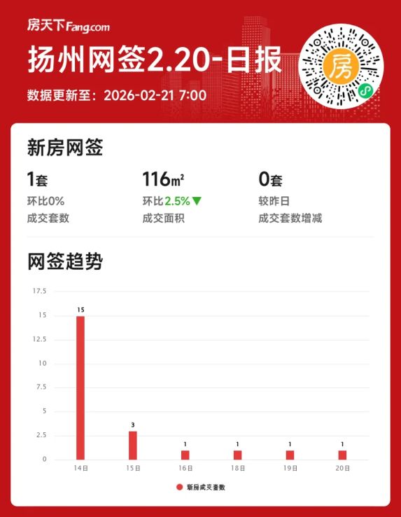 2026年02月20日扬州新房成交量微波动?月度涨幅超九成!