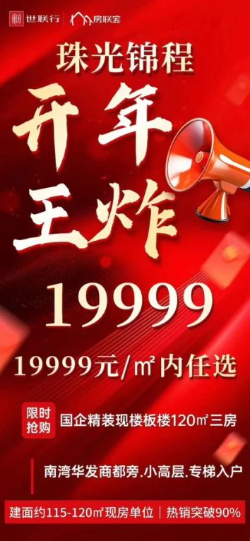 秒杀拼手速抢。珠光锦程华园单价19999元一平方