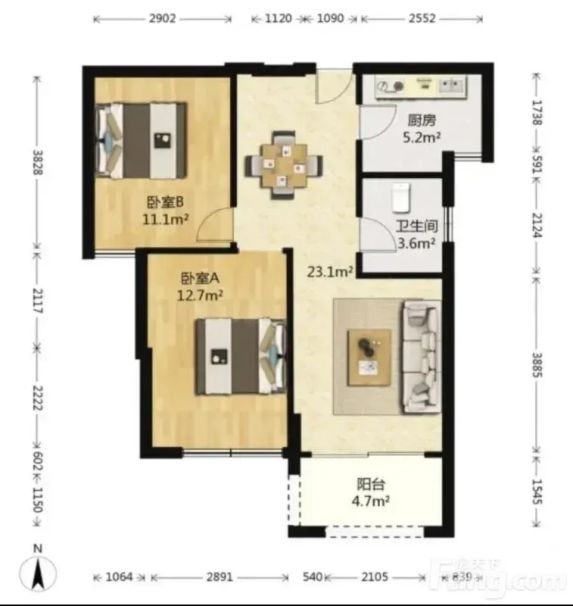标题:急售!自家南北通透两居室🏠谷阳大道黄金楼层!