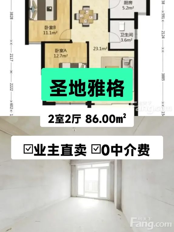 我家在圣地雅格小区,区政府东侧黄金地段🌆房子在11层(总高18层),86平两室两厅,南北通透的板楼设计,阳光从早晒到晚☀️