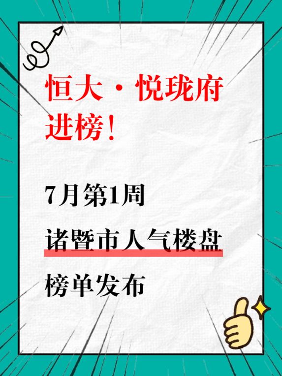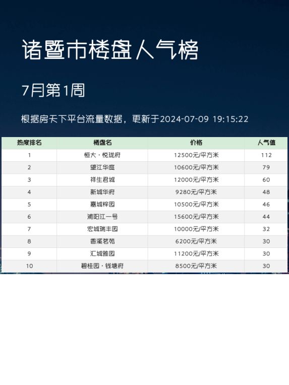 诸暨市人气楼盘榜单,恒大·悦珑府荣登榜首!