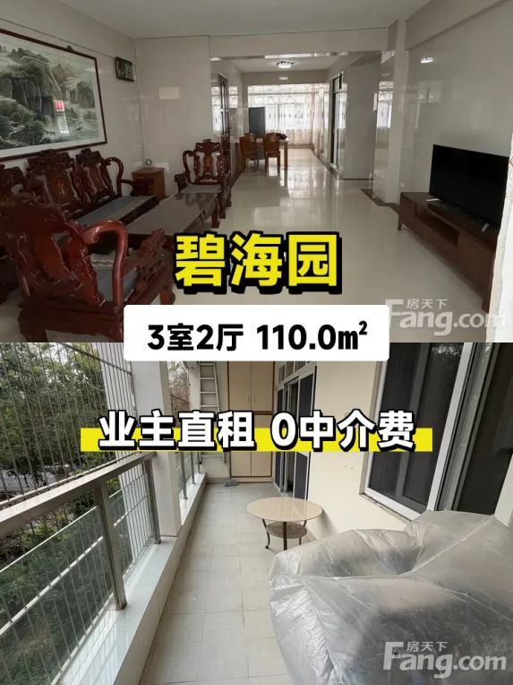 标题:自家碧海园三居室出租啦!东南向采光超棒🌞